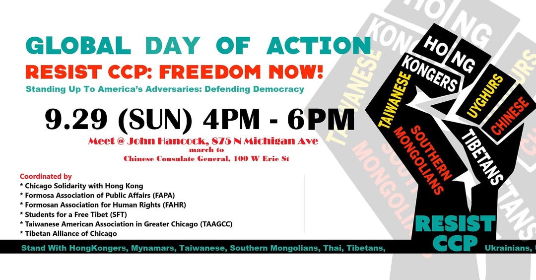 芝加哥聲援香港By TAAGCC / September 25, 2024 本會也參與這項抗議活動。 邀請各位同鄉一起上街! Chicago Solidarity with Hong Kong 芝援香港 https://www.facebook.com/events/453081284550740/ View on Facebook →