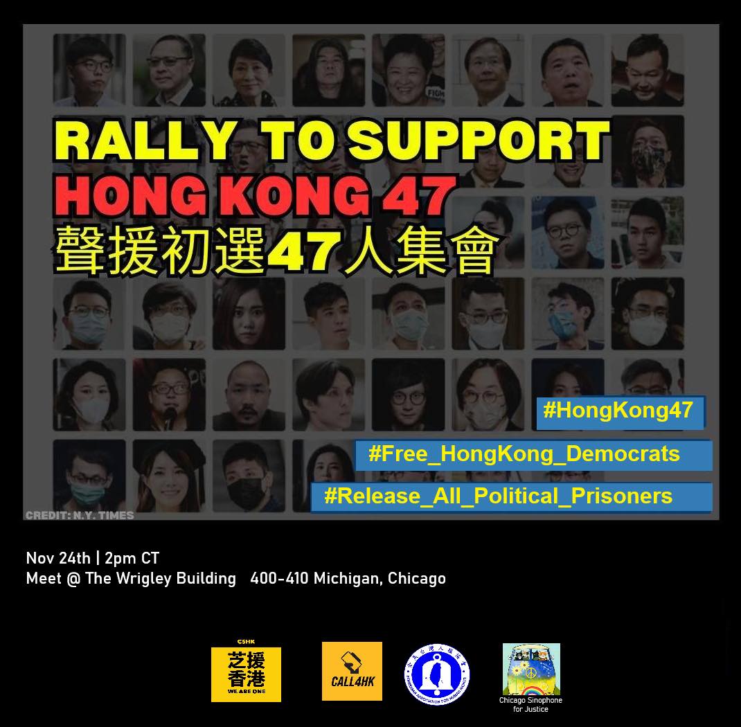 #HongKong #Chicagoans will show solidarity with all #HK47 & in particular the 45 political leaders behind bars in a protest rally.