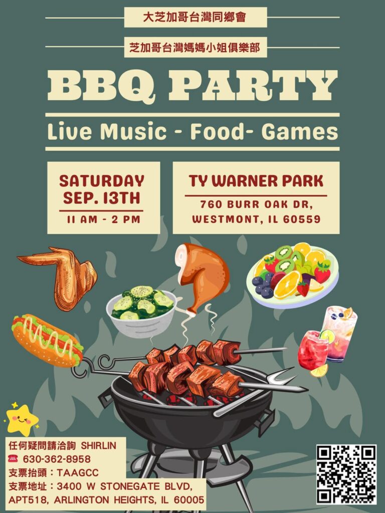 大芝加哥台灣同鄉會9月13日舉辦BBQ烤肉派對,邀請鄉親帶家人朋友共享美食與歡樂時光。
