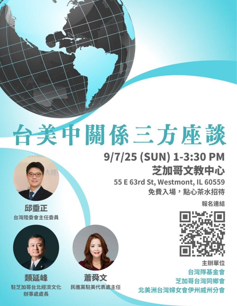 台美中關係三方座談,邀請陸委會主任委員邱垂正等貴賓出席,免費入場,歡迎報名參加。