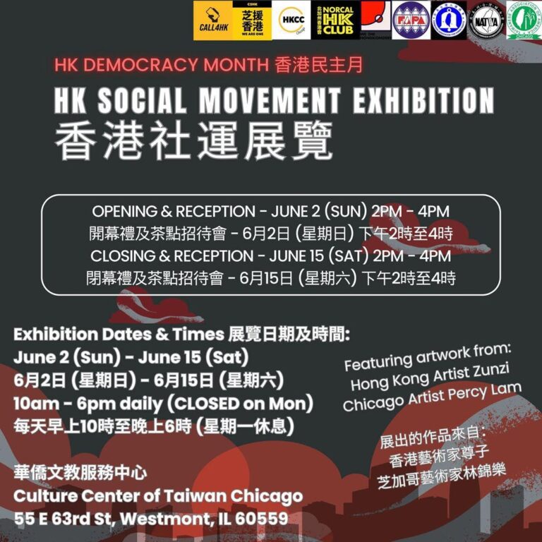 芝加哥舉辦香港社運展覽,展出政治漫畫家尊子與藝術家林錦樂的作品,6月2至15日在芝加哥文教中心舉行。