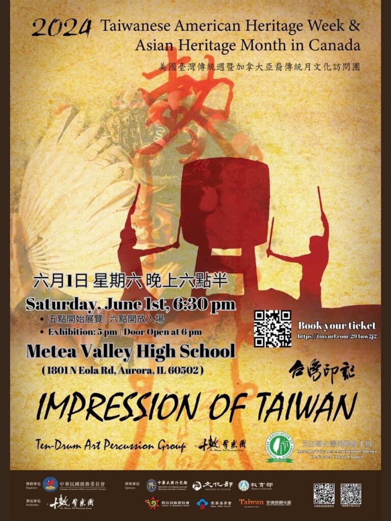 十鼓擊樂團今日在Metea Valley High School精彩演出,台灣特展下午5點開始,表演廳6點半開演。