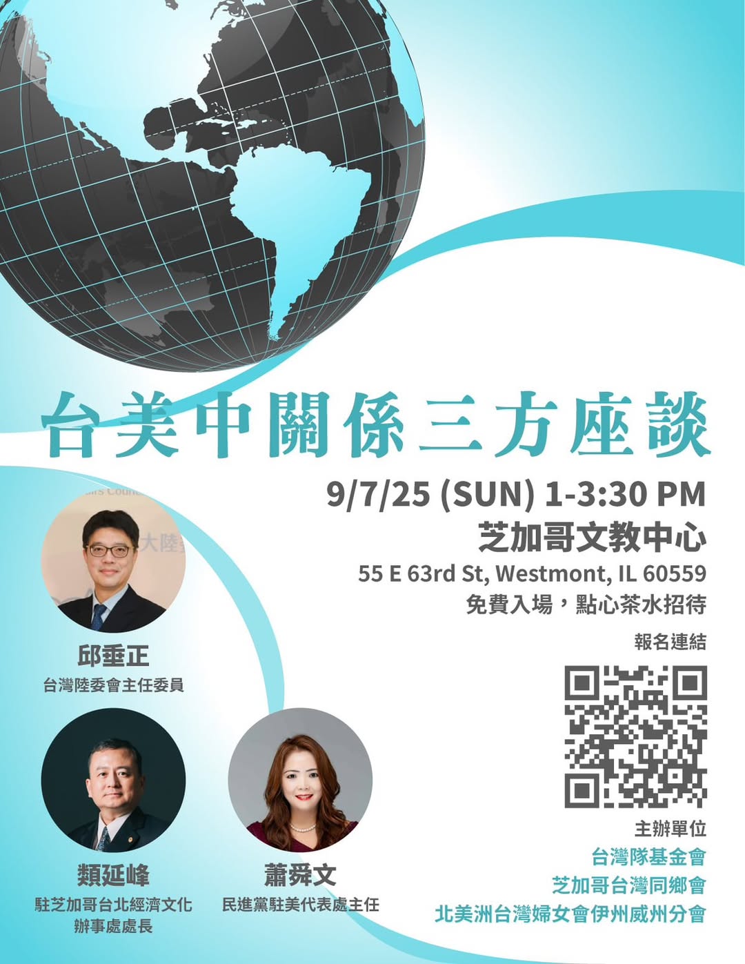 台灣陸委會主任委員 邱垂正 駐芝加哥台北經濟文化辦事處處長 類延峰 民進黨駐美代表處主任 蕭舜文